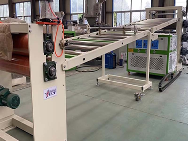 PE化學發(fā)泡片生產線:該設備采用120-30比1單螺桿擠出機、液壓自動換網器、可調模具、立式三輥壓光機、三合一輥筒恒溫機、不銹鋼冷卻托架裝并裝靜電處理裝置及有寬幅可調的合金切邊刀、橡膠輥牽引機、雙工位氣漲軸收卷機。全線采用:日本歐姆龍智能溫控儀、施耐德低壓電器、國內馳名品牌變頻調速器。